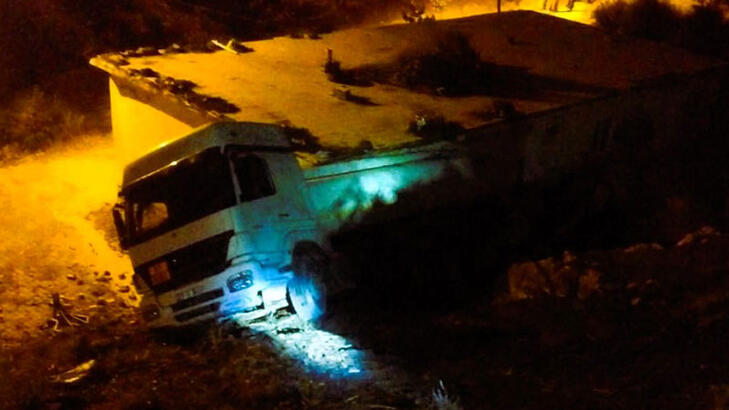 Facia teğet geçti Hafriyat kamyonu eve daldı