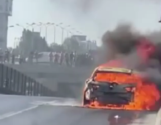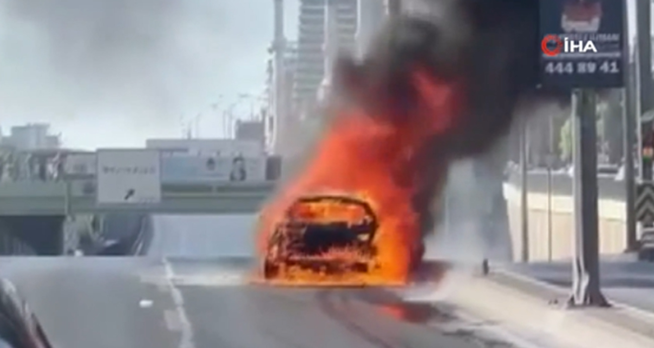 Beylikdüzü E5te seyir halindeki otomobil alev alev yandı