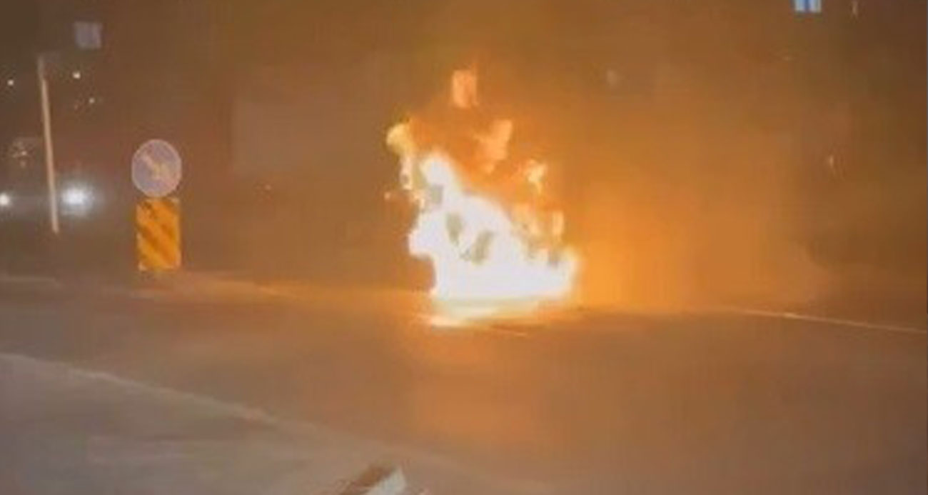Yolcu otobüsü alev alev yandı