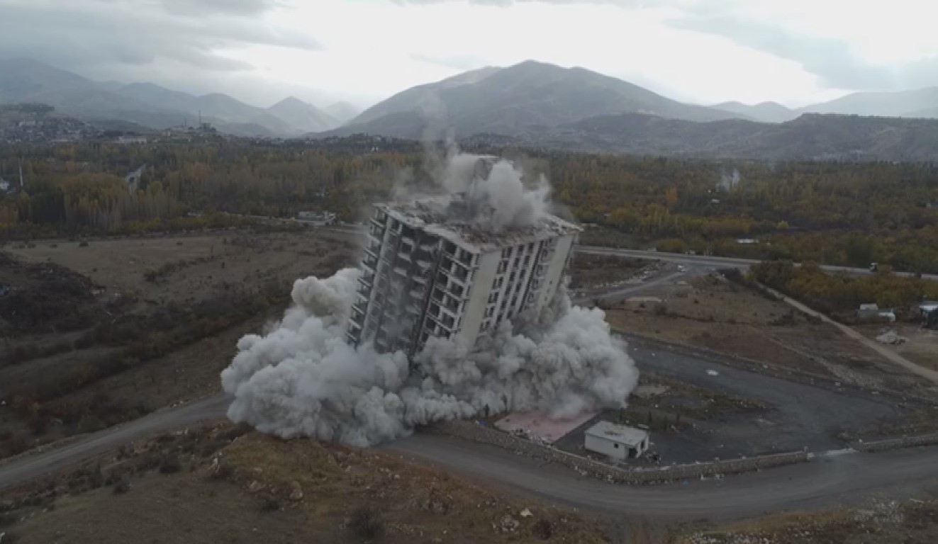 Malatyada 16 katlı ağır hasarlı bina patlayıcıyla yıkıldı