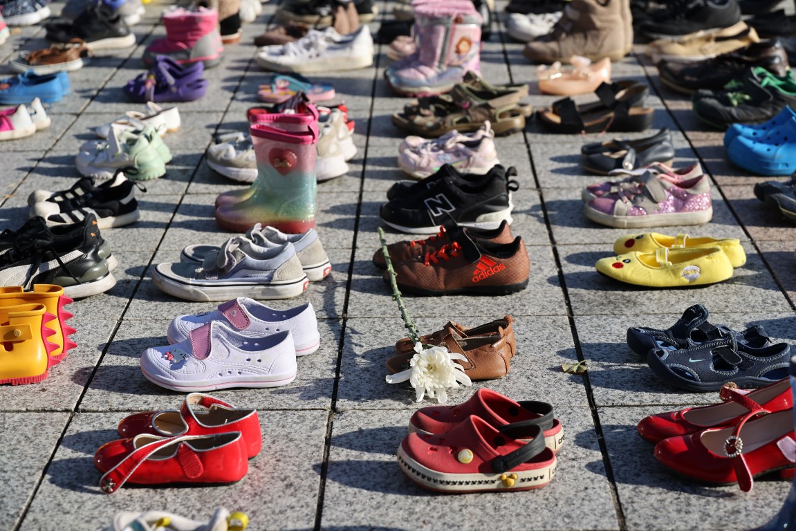 Seulün merkezine Filistinde hayatını kaybedenlerin anısına 2 bin ayakkabı bırakıldı