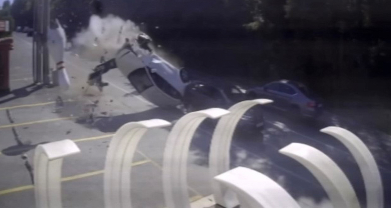Sarıyerde feci kaza kamerada Bowling heykeline çarpıp takla attı