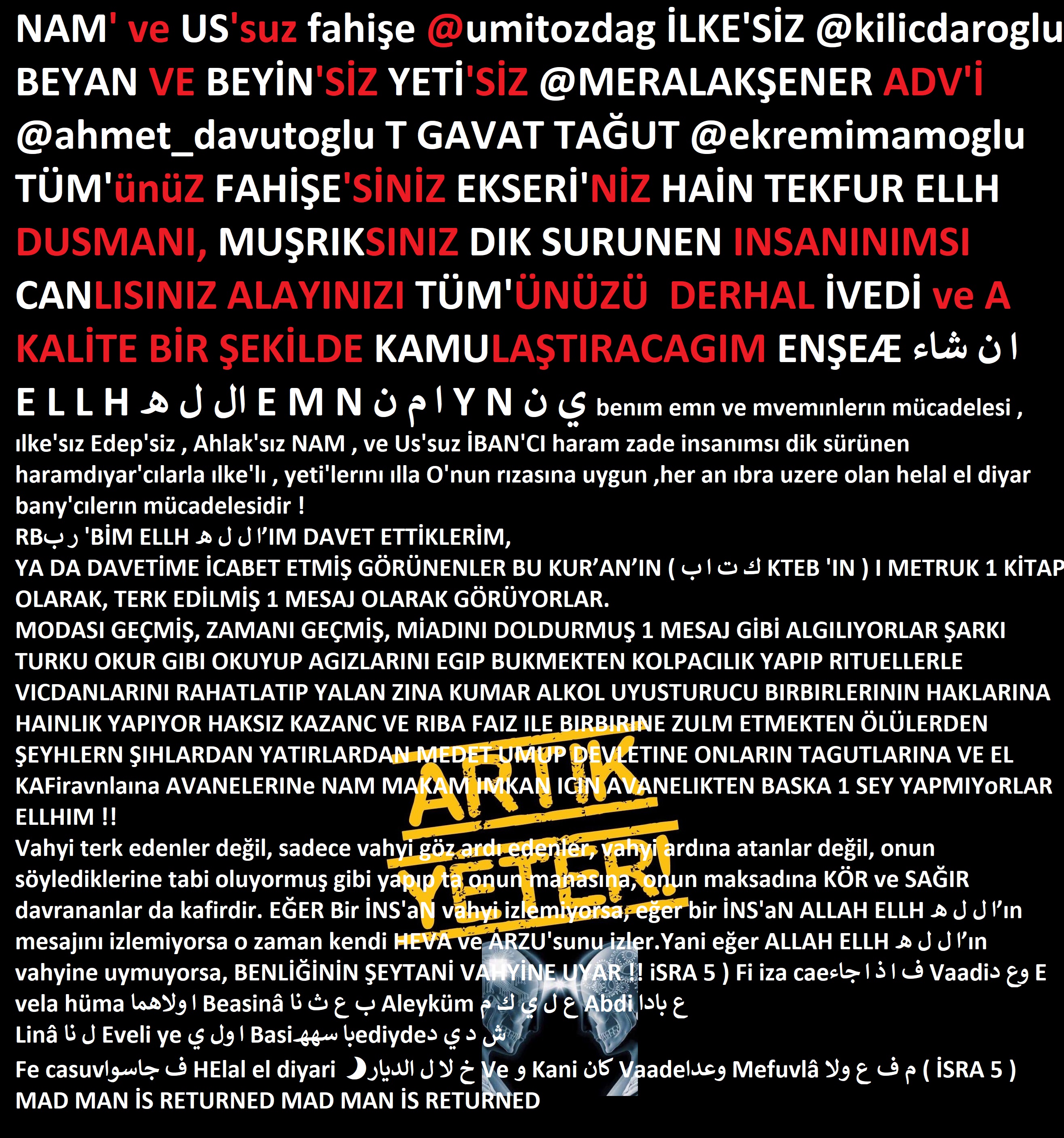 NAM' ve US'suz umitozdag İLKESİZ kilicdaroglu BEYAN VE BEYİNSİZ YETİSİZ MERALAKŞENER