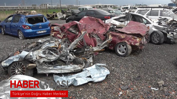 Kahramanmaraşta enkazdan çıkarılan otomobillerin araba mezarlığında güvenliği sağlanıyor