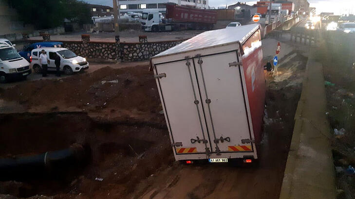 Kocaelide sağanak sebebiyle çöken yola kamyonet düştü