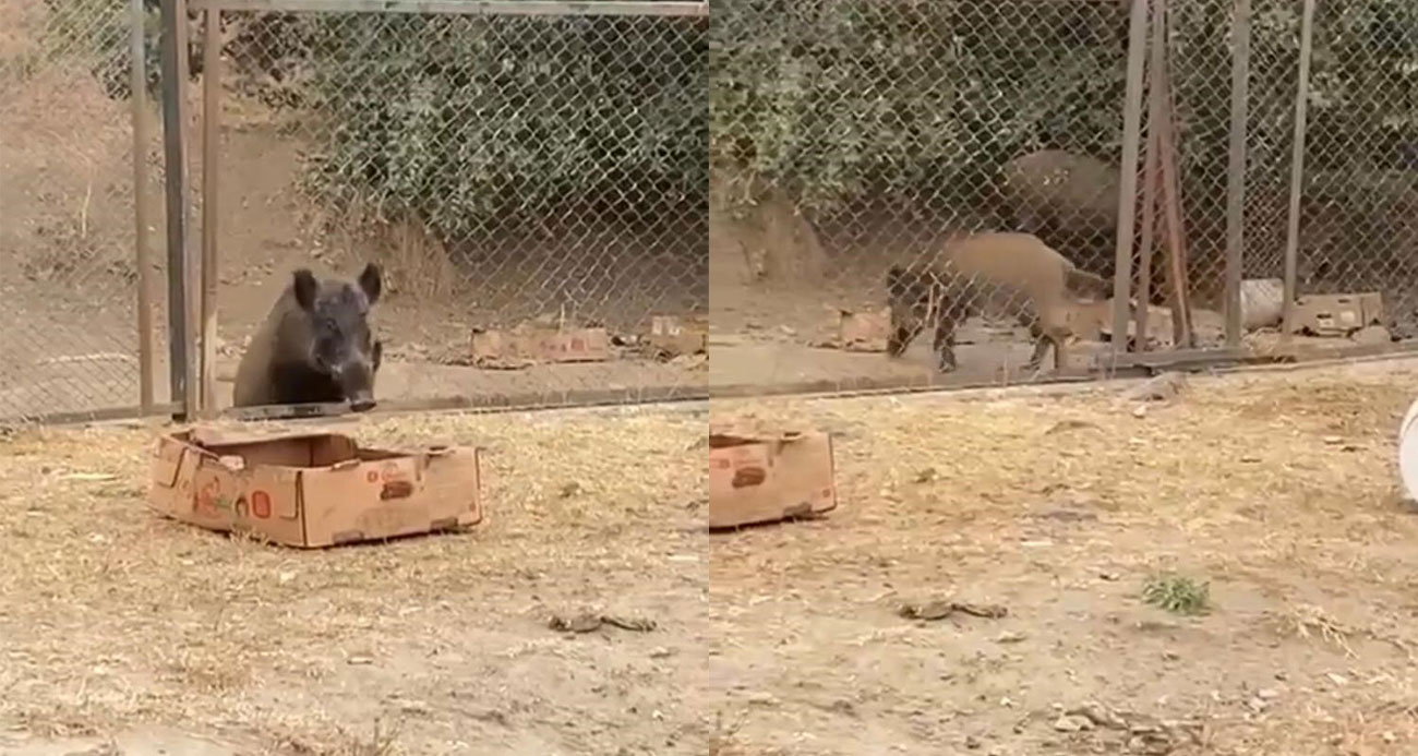 Aç kalan domuzların şehir merkezine indiği anlar kamerada