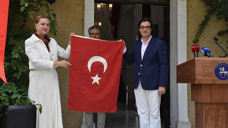İzmirin kurtuluşunda elde dikilen Türk bayrağı Bayrakbilim ve Türk Bayrakları Müzesinde