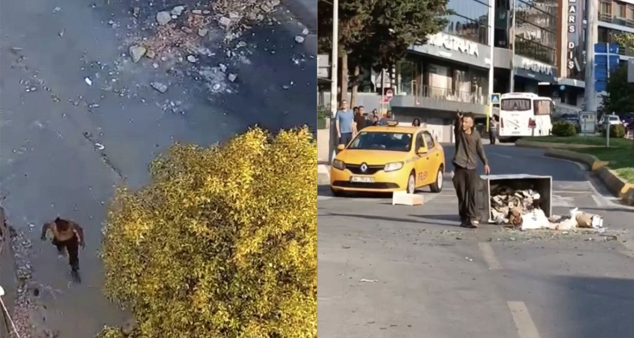 Kağıthanede yol kapatıp araçlara taş atan şahıs kamerada Sürücülere zor anlar yaşattı