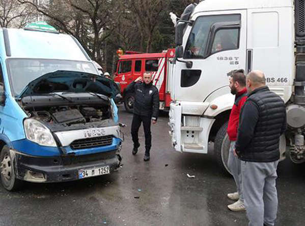 Hafriyat kamyonu ile minibüs çarpıştı 7 yaralı