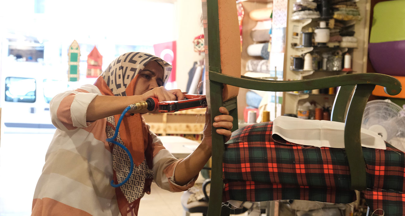 Sedir imalatı yapan kadın girişimci tek başına hem üretiyor hem onarıyor