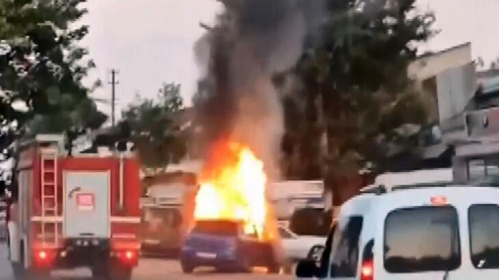 Seyir halindeki otomobil alev topuna döndü