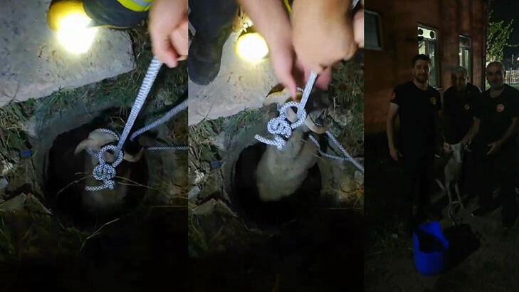 Kanalizasyona düşen koyunu itfaiye kurtardı