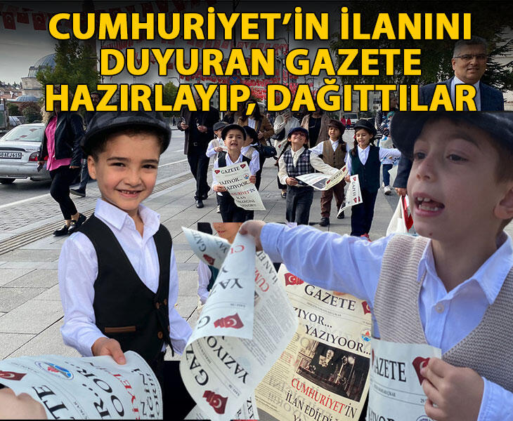 İlkokul öğrencileri Cumhuriyet’in ilanını duyuran gazete hazırlayıp dağıttı