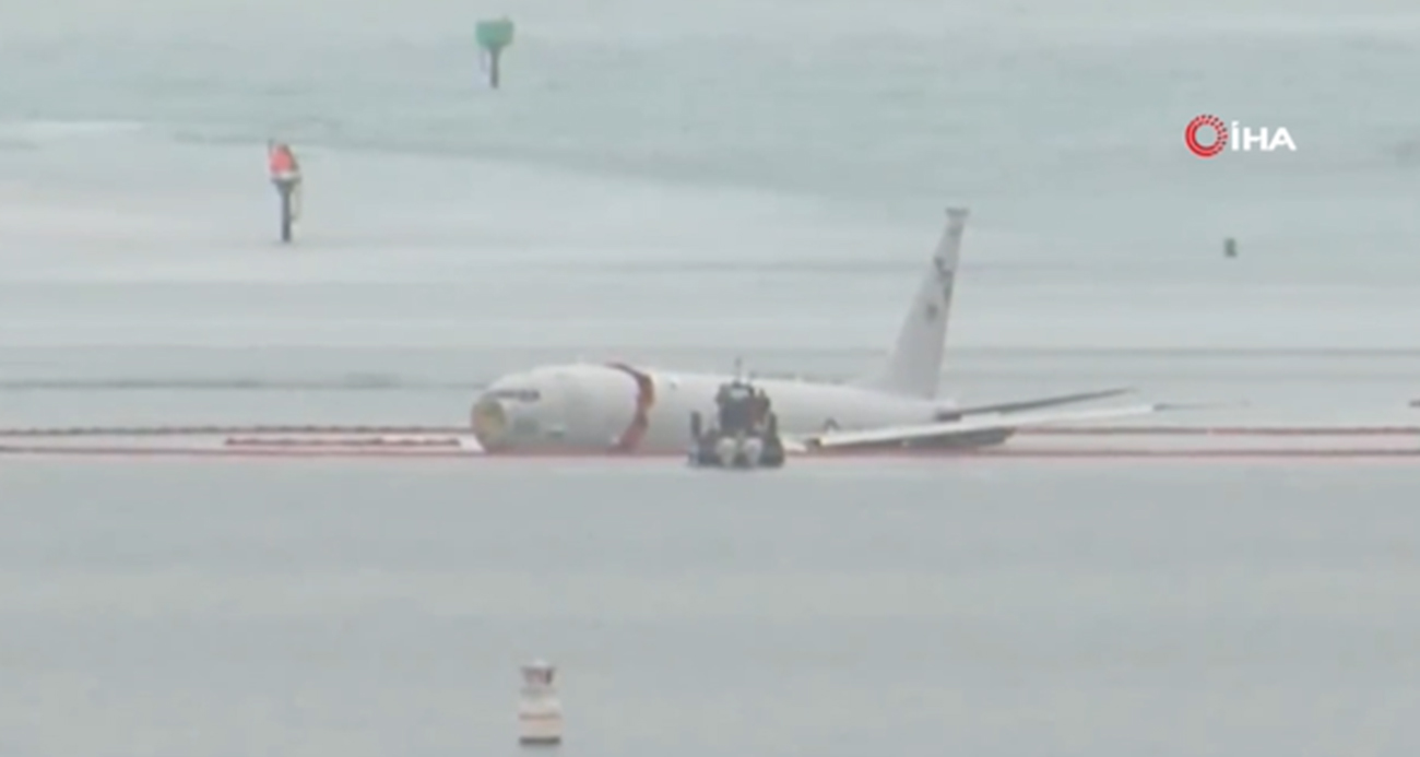 ABD donanmasına ait uçak pisti geçip denize düştü