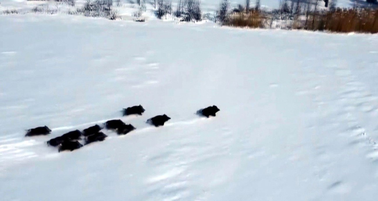 Popülasyonu artan domuz sürüsü havadan görüntülendi